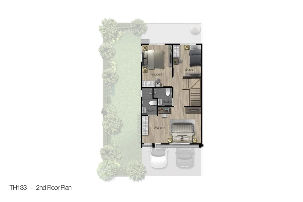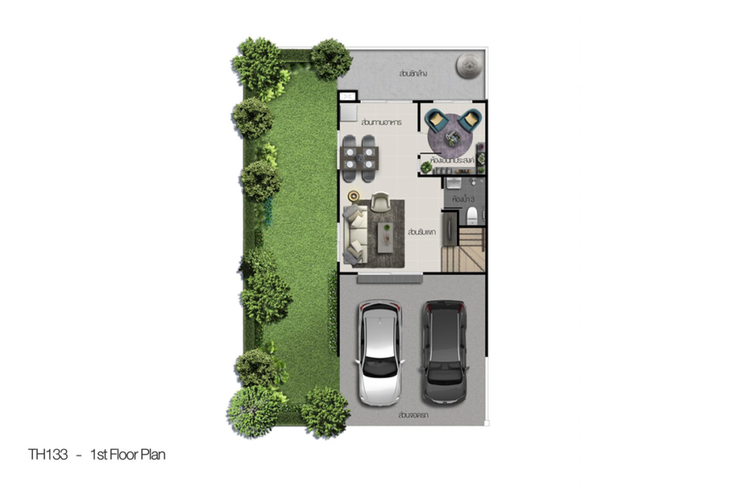 🏗️ แบบบ้าน: TH Loft 133 (หลังริม) – บ้านทาวน์โฮมหน้ากว้าง 5.7 เมตร ฟังก์ชัน 3 ห้องนอน 3 ห้องน้ำ พร้อมห้องอเนกประสงค์ล่าง 1 ห้อง ที่จอดรถ 2 คัน